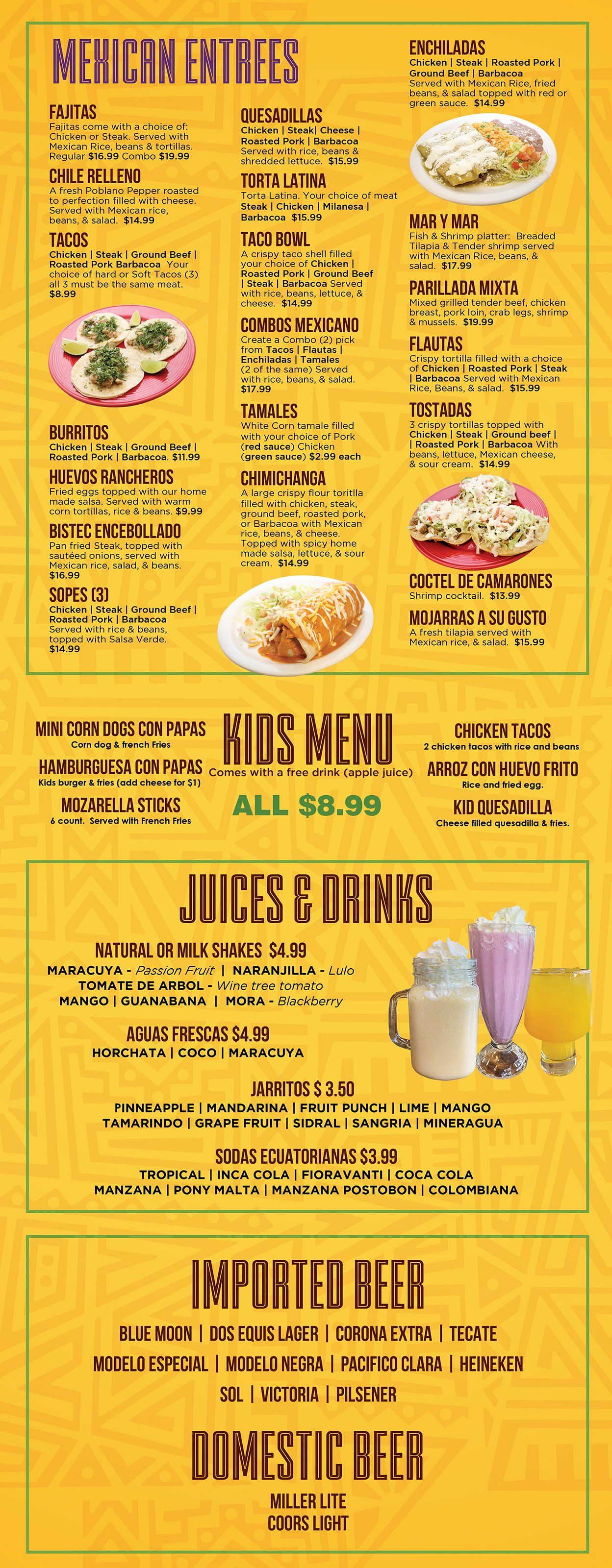 Top round grilled steak sautéed with tomato, peppers, onions, and servered with green plantain and two fried eggs.